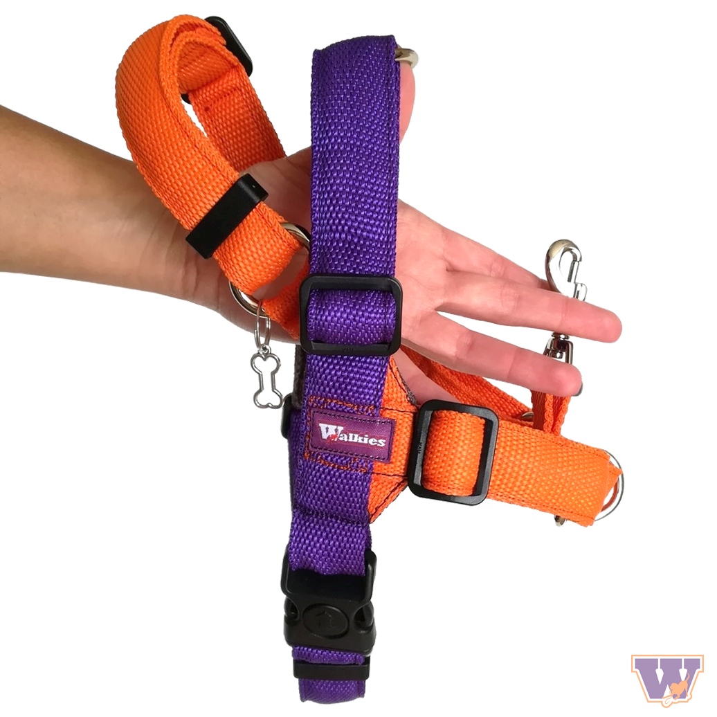 Este peitoral é idêntico ao Walkies No-Pull, mas em vez de apenas uma cor, agora pode escolher duas cores ao seu gosto!