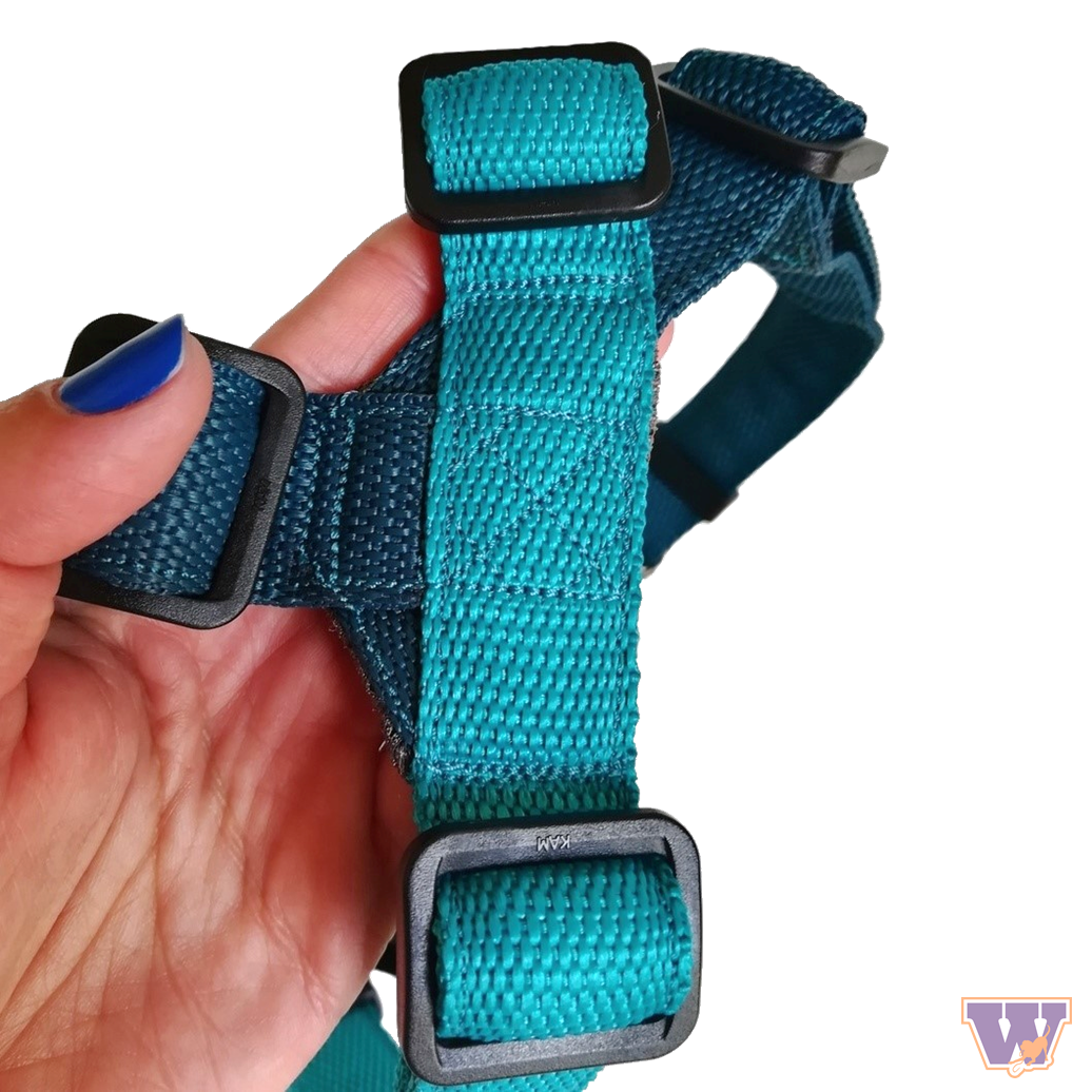 O Arnês Walkies No-Pull – Xtreme Colors (peitoral anti-puxões) é um artigo de fabrico artesanal. Ideal para cães que puxam à trela, mas também para os que não puxam. Para cães grandes ou pequenos, cachorros, adultos ou idosos, cães reactivos ou sociáveis e brincalhões.
